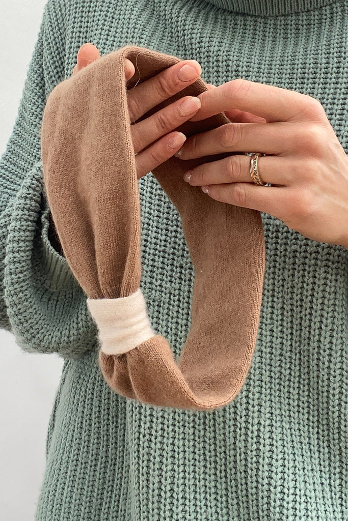 Cashmere and Wool Headband in Hot Coral and Pale Pink