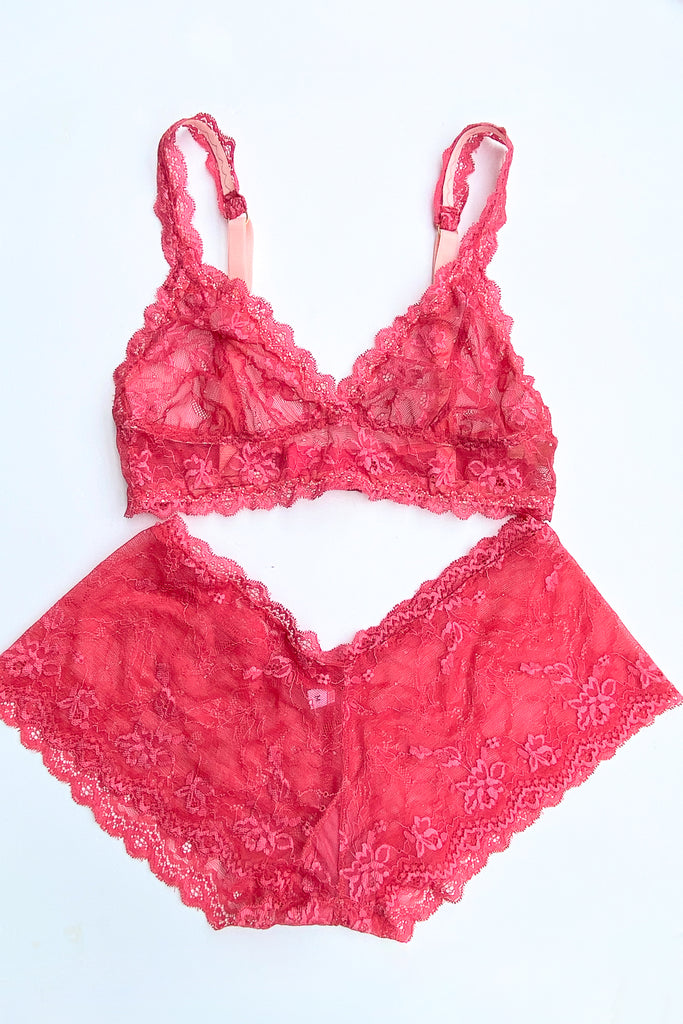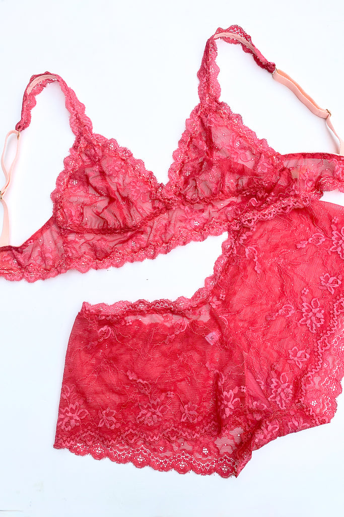 Pink Himalayan Salt and Red Lace Triangle Bralette and Briefs