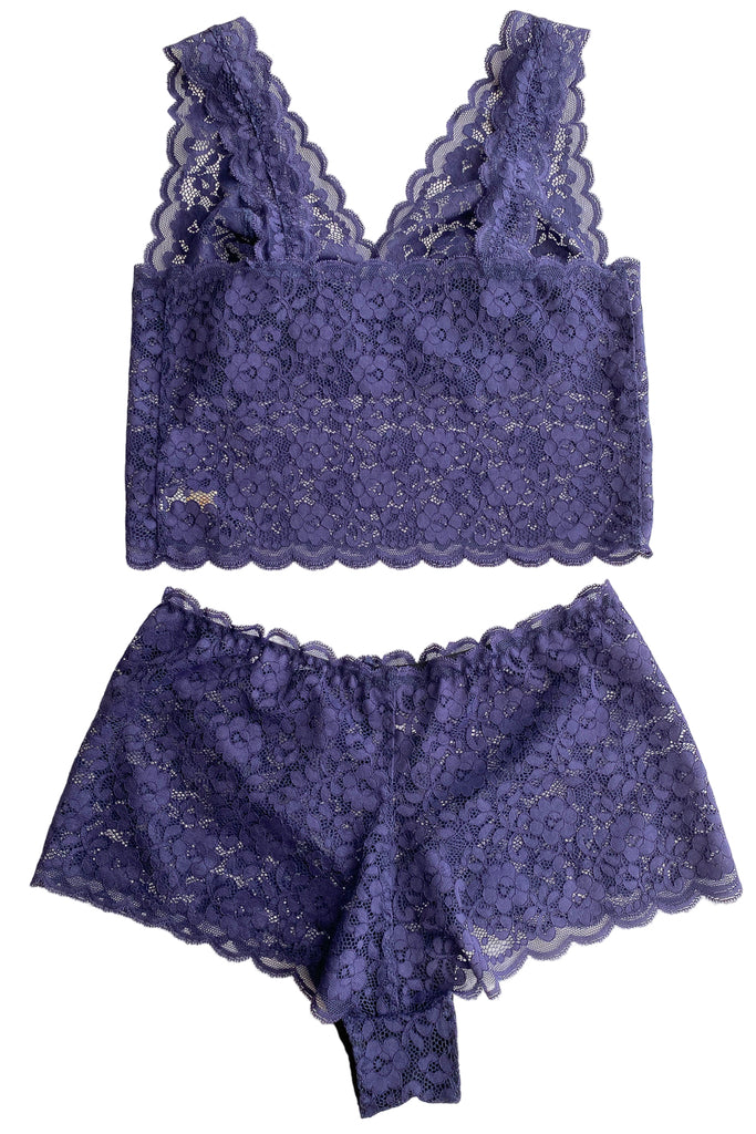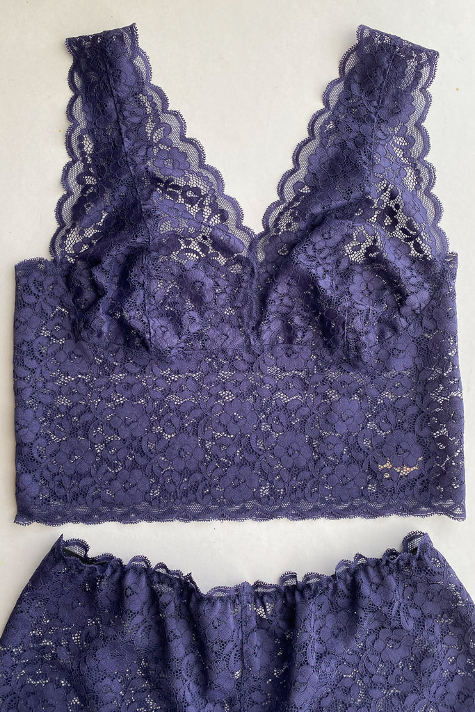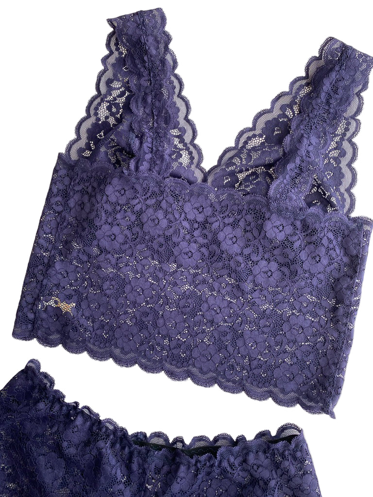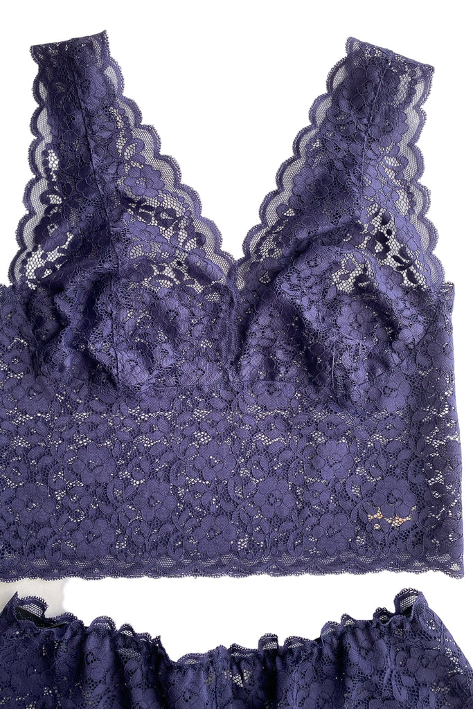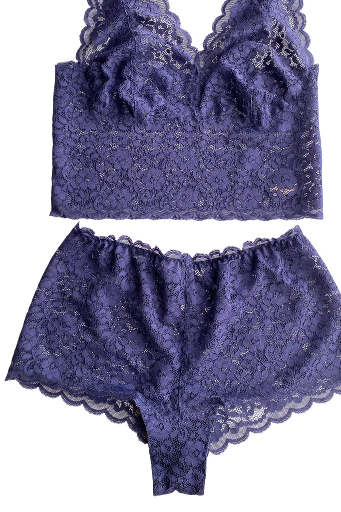 Midnight Garden Lace Plunge Bralette and High Waisted Knicker Set