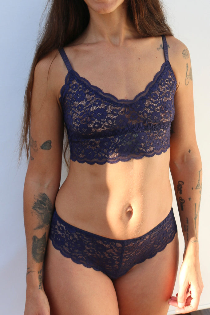 Scoop Bralette and Ellie Briefs in Midnight Garden Lace